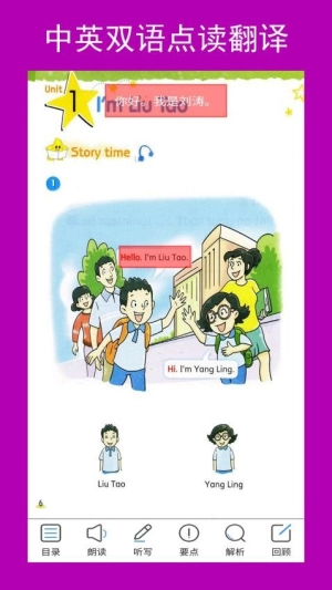 1、专门为一年级的学生设计的中英双语点读翻译软件,帮助孩子轻松掌握英语学习;