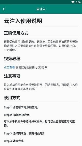 虽然软件将来会逐步更新一些加固措施,但要注意自己才是硬道理,云注入为降低用户使用成本,提供便捷云服务 支持免费使用所有功能。