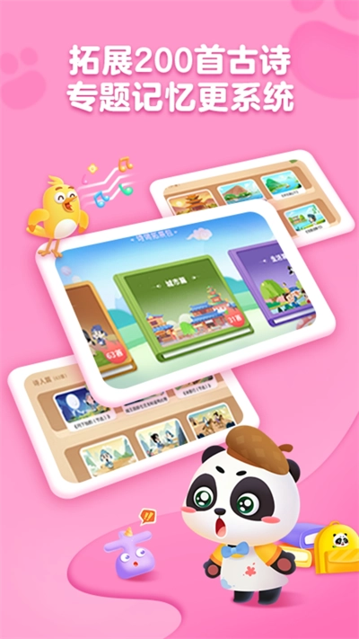 2、不仅包含古诗词的文字,还有可爱生动的绘图,让孩子们更深入地理解诗词的意义。
