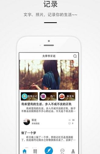 首页在首页,每日推荐日记,热门信息及最新发布的日记记录都能看