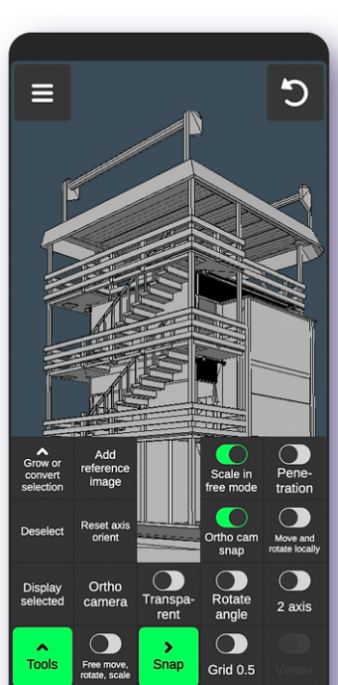 1、对象选择:3D Modeling App点击攻击对象能够克隆工具、镜像工具、平滑工具等,这样能够快速设计。