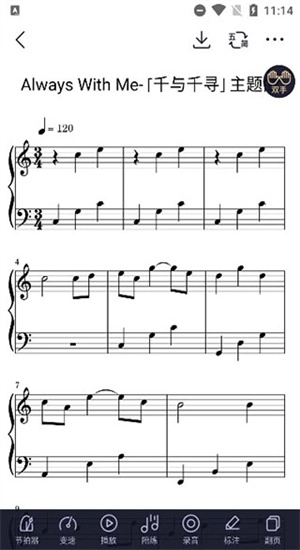 3、五线谱转简谱、内置节拍器、乐谱标注、弹奏录音、自动翻页、乐理知识等。