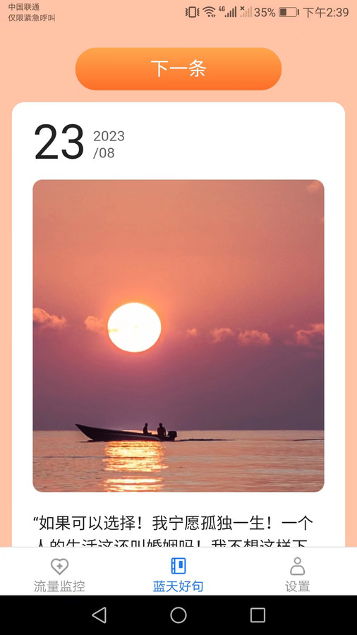 1、自由设置本月使用流量上限,智能提醒您的用量是否逼近极限。