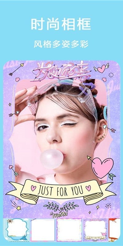 3.自带多种风格的滤镜和贴纸,清纯型、甜萌型、怀旧风……想怎么搭配就怎么搭配;有海量背景和相框可供选择,协助烘托搭配风格和节日气氛。