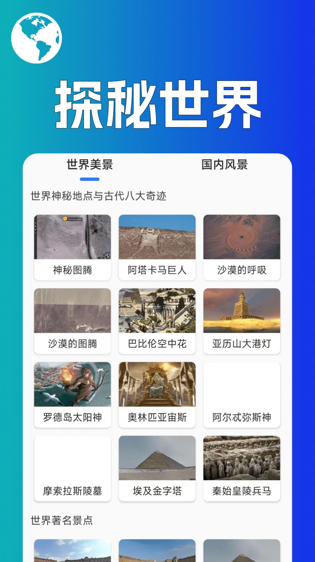 1、拥有丰富的景点信息,除了城市街景外,还提供了各个国家的旅游景点信息,您可以通过该应用程序“游走”全球;