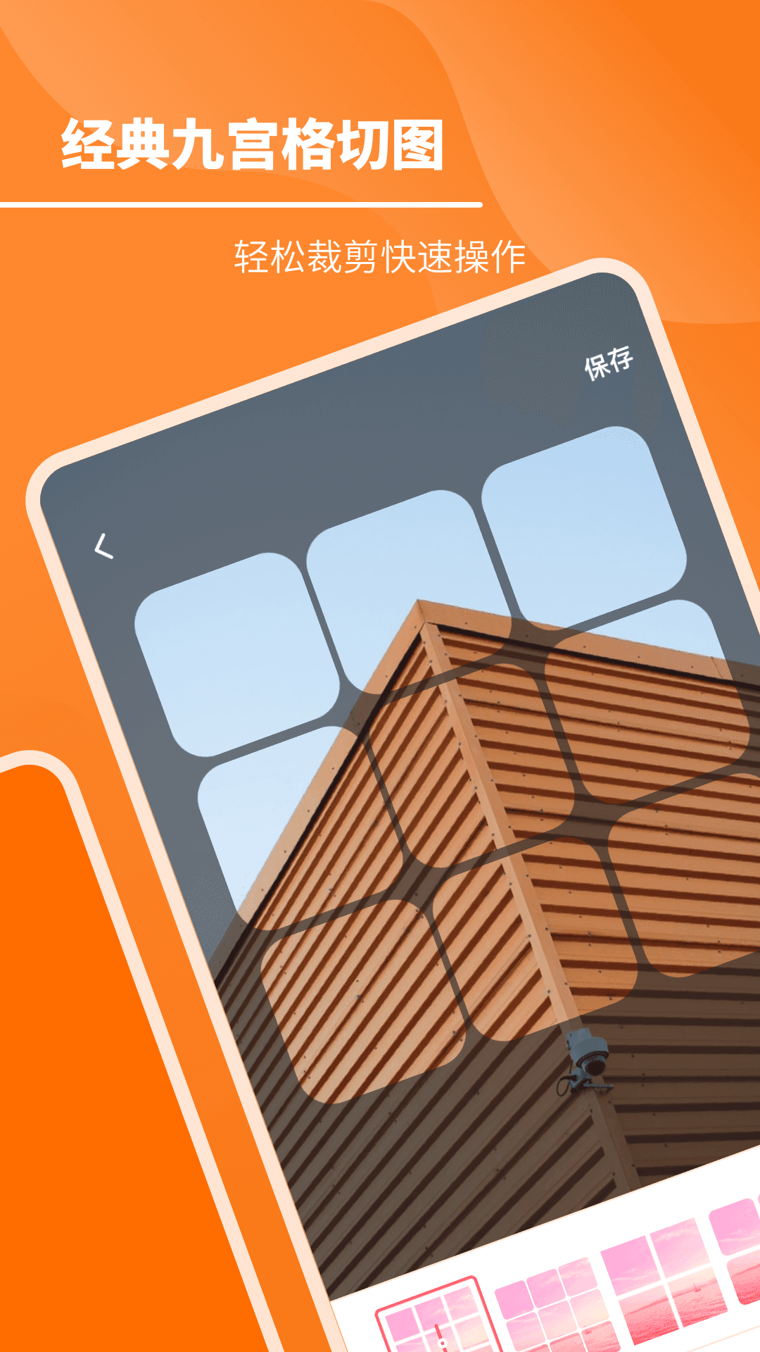 3、一步裁剪九方图,裁剪效果实时预览,效果非常丰富,可以看到所有的图片资源。