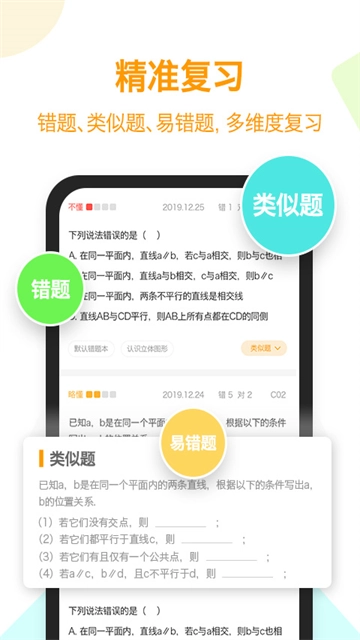 精准复习错题、类似题、易错题,多维度复习