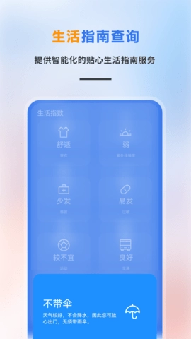 2、异常天气情况及时提醒,提供生活指南、穿衣指南、运动指南等。