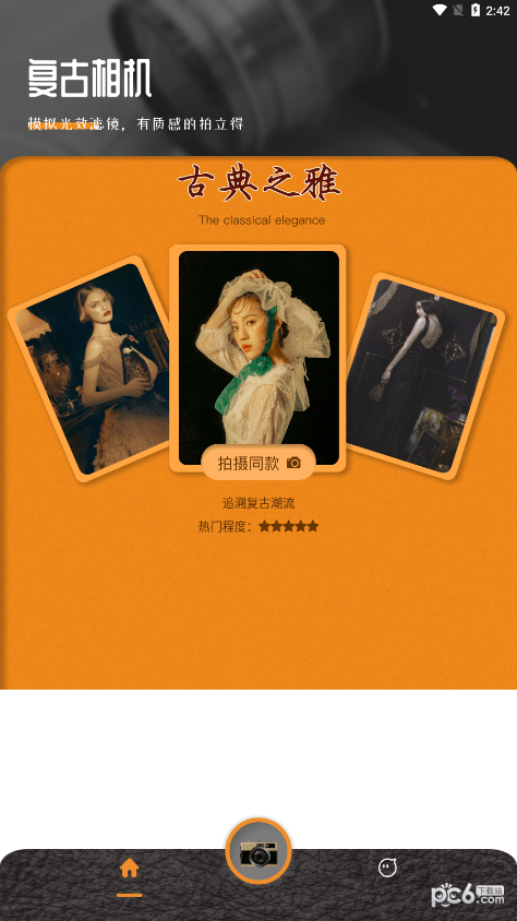 拥有时下非常流行的滤镜和美颜效果,带给你美好的视觉体验!点击拍照即可获取高级滤镜效果,轻松拍出高级大片!