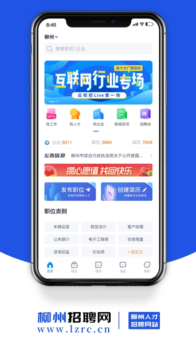 柳州招聘网app可以根据用户的搜索记录和简历信息,推荐更符合用户需求的招聘信息和职位信息,提高用户的匹配度和求职成功率,求职者可以上传简历到平台,并通过简历审核后投递给心仪的招聘单位,求职者可以与招聘单位进行在线沟通,如发送简历,咨询职位信息等,同时,用户也可以在平台上管理和修改自己的简历,以匹配更多优质的工作机会。