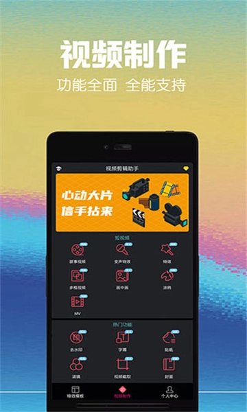视频剪辑助手app是一款短视频编辑软件,集视频主题、视频剪辑、视频字幕和视频配乐等服务,旨在让用户们可通过这款手机视频剪辑助手轻松编辑制作短视频,视频剪辑助手app是个专业的手机短视频剪辑编辑制作软件。手机视频剪辑助手专注于视频短视频,微电影,小影片的拍摄,编辑剪辑功能。视频剪辑助手支持用户添加背景音乐,可以从手机音乐库中选择喜欢的音乐,或者导入自己的音频文件,为视频增加动感和氛围。
