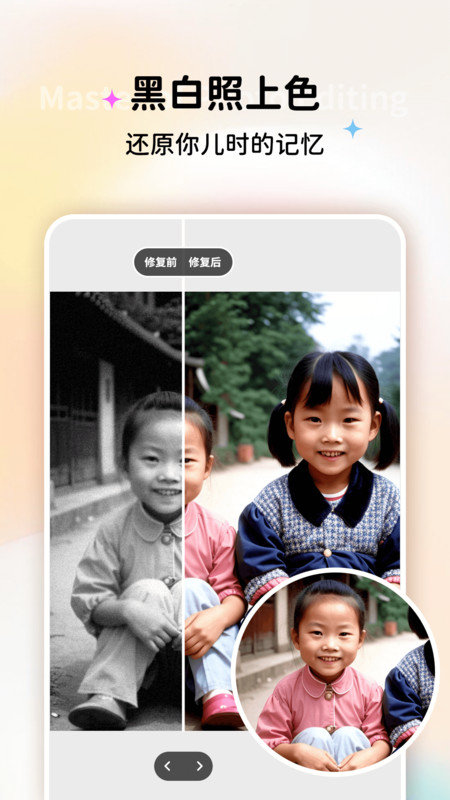 1.修复过程快速,不会耗费用户过多的时间,让用户更加方便地修复照片。