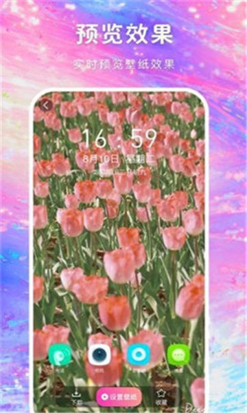 1.预览设置:用户可以在软件中自由预览和设置手机桌面和锁屏壁纸,方便用户选择合适的壁纸并实时看到效果。