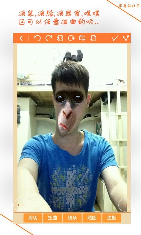 1、趣味无穷,可以对图片进行扭曲、剪切、贴图、加相框。