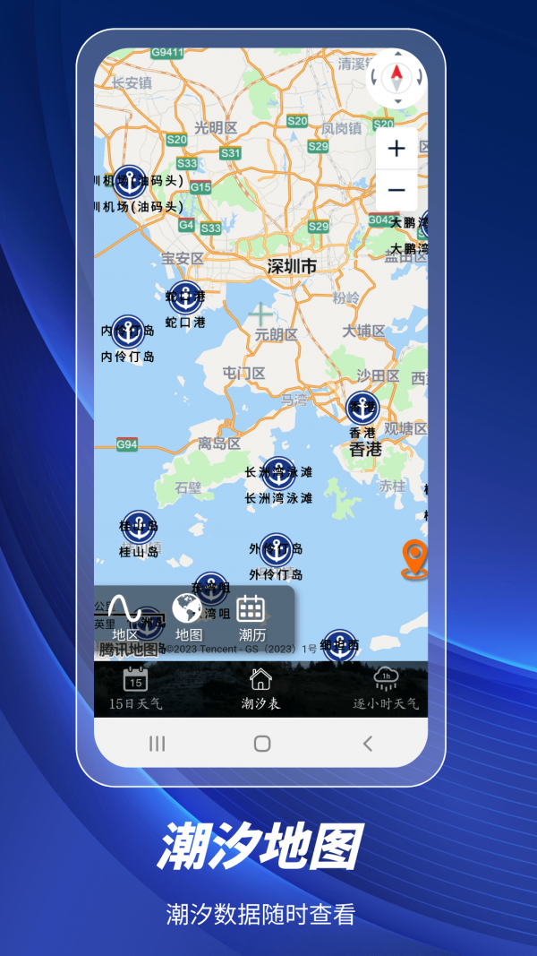 内置国内主要港口、岛屿及验潮站数据。查看涨潮退潮时间。