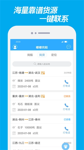 【船货预约】每天更新海量空船、货源,覆盖长江全线、运河及其它内河,一键拨打电话;