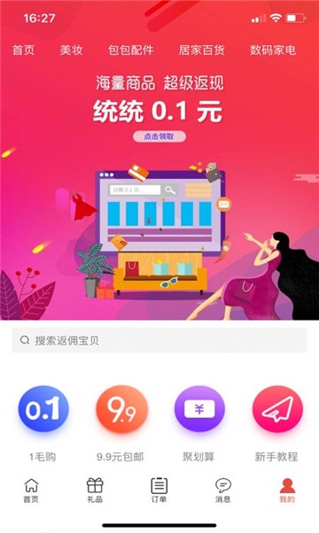 进入限时抢购或9.9包邮板块购物能享用到不同的购物福利;