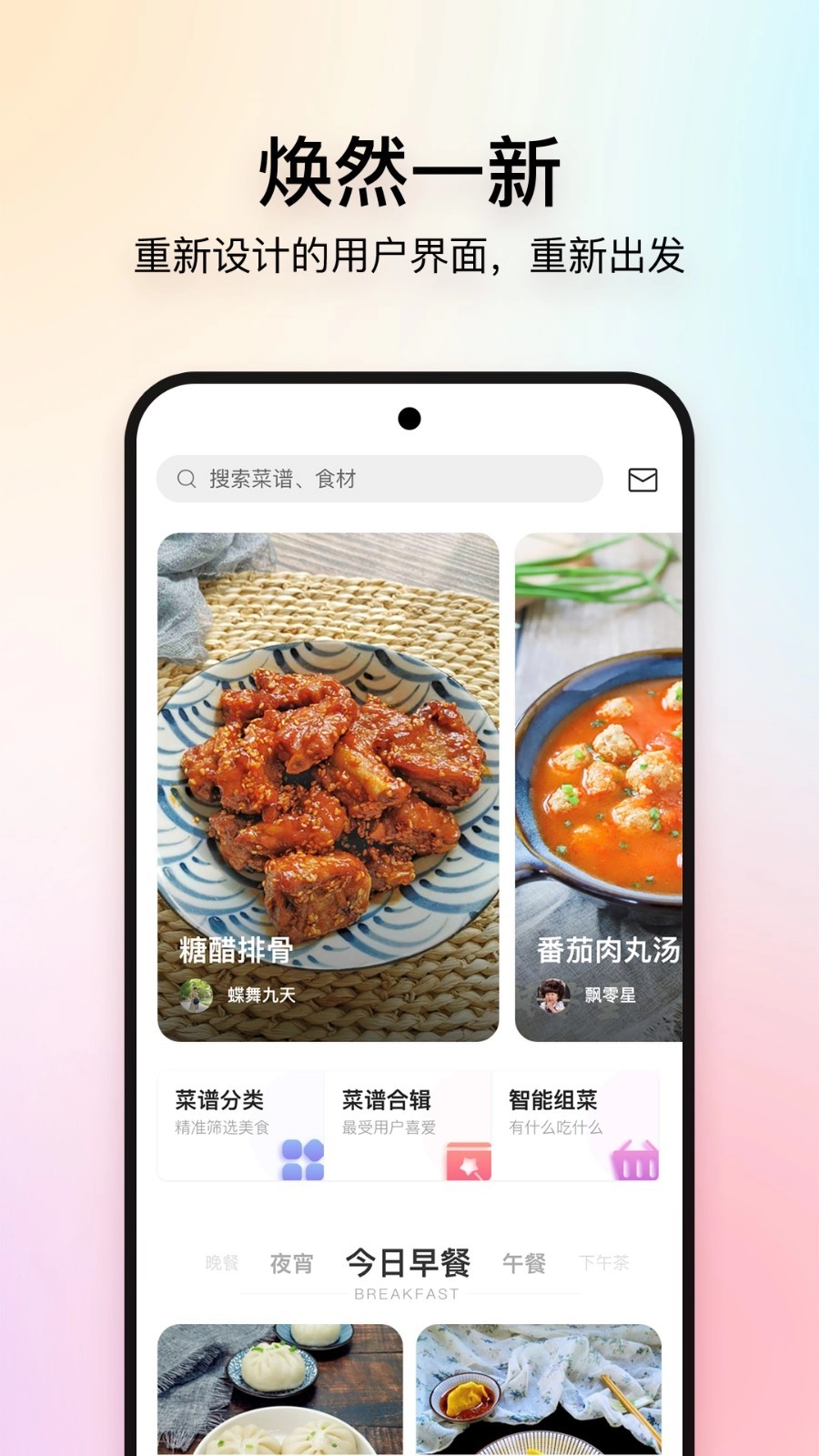 美食杰网独特的三餐菜谱推荐,每天推荐15道精品菜谱,覆盖三餐及下午茶、夜宵。