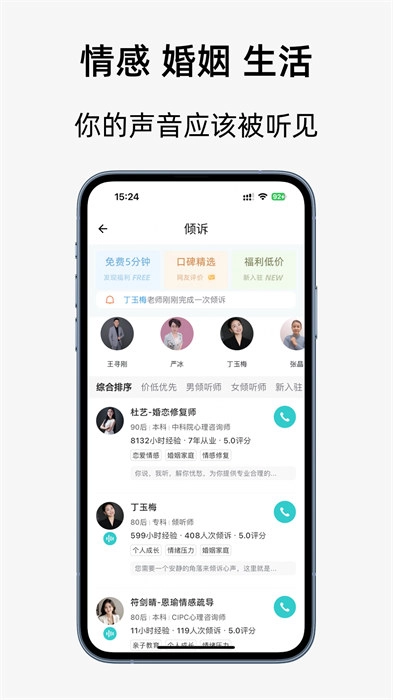 3、【实力认证】超过10万精英倾听者,放心说心事。