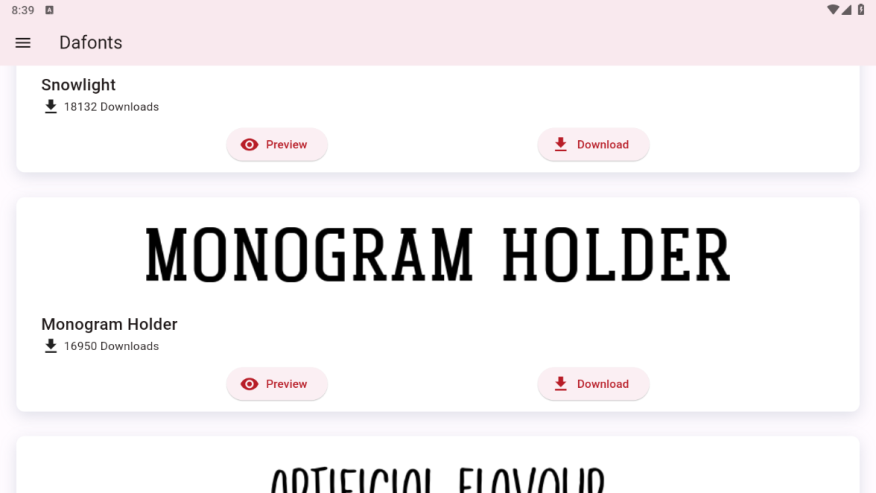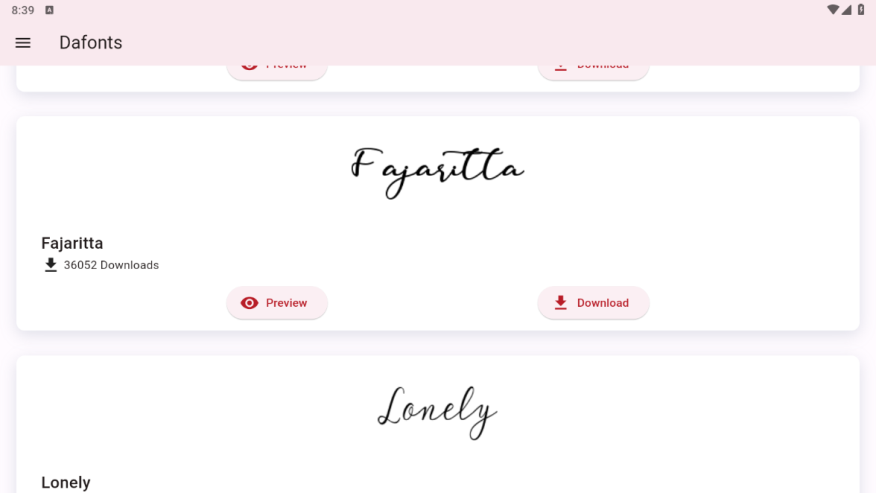 DaFont字体app是一款提供免费字体下载和使用的应用软件,该软件汇集了大量的字体资源,涵盖了各种风格和分类,包括艺术字体、手写字体、书法字体等等,用户可以通过该软件快速浏览、搜索、下载自己喜欢的字体,并在设计、排版等领域中使用。此外,DaFont字体app还支持在一个界面中比较多个字体,帮助用户进行更直观、全面的选择。