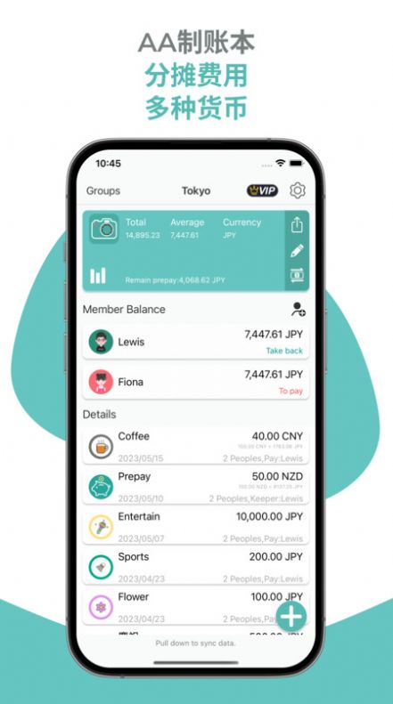 2、智能化的费用分摊功能,在群组中,用户可以轻松分摊共同消费的费用;