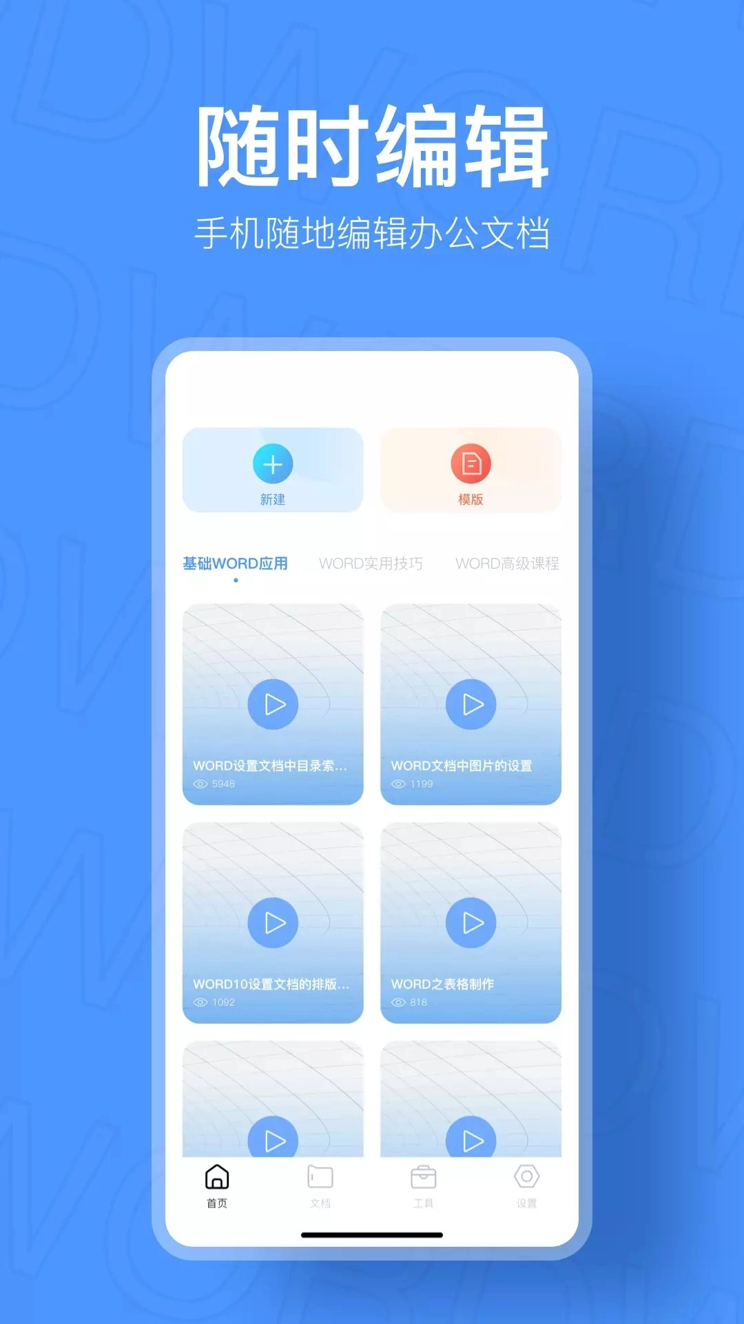 3、word文档表格编辑支持word、excel等文档在线实时编辑,您可以将手机的word文档导入文档表格编辑方便文件管理;