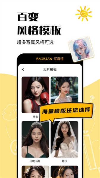 百变写真馆是一款提供各种写真模版的手机软件,通过海量的模板素材和各种场景下的写真风格,用户可以自由选择并打造出符合自己需求的照片。应用对想要自行设计或制作写真照片的用户来说非常实用。它能够让用户摆脱线下拍摄的限制,随时随地通过手机完成写真照片的设计,满足用户对于个性化、创意化的需求。