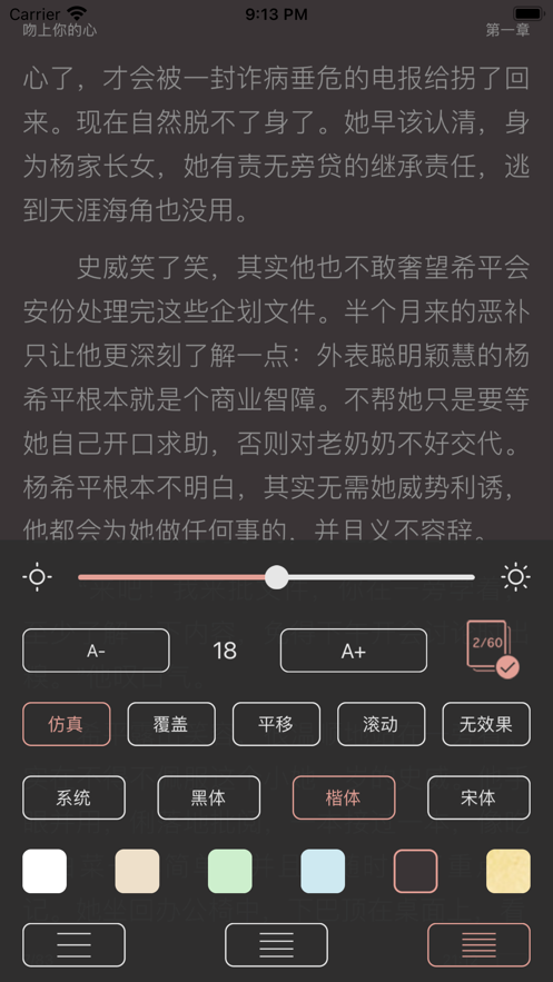 2、护眼模式:对于阅读页面的字体、亮度、背景均可设定,更贴心;