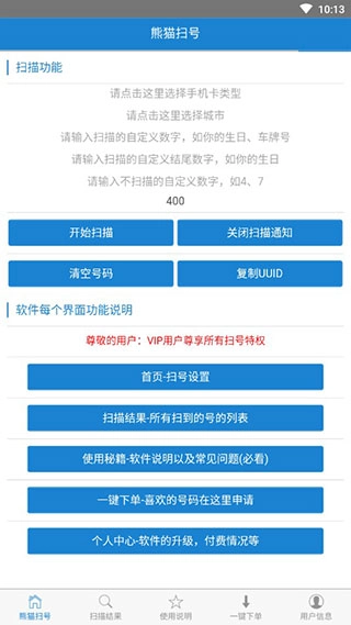 熊猫扫号app是一款便捷实用的电话号码挑选助手,该软件支持用户直接在应用内购买所选号码,提供便捷的号码购买服务。