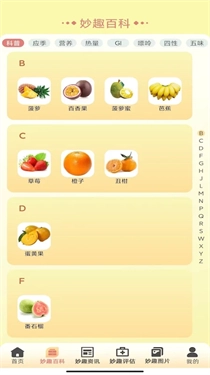 妙趣水果是一款包含丰富的水果百科知识的软件,提供详细的水果种类介绍,包括水果的形态特征、产地、风味特点、营养价值等方面的知识,让用户能够了解各种水果的相关信息。提供水果种植的技巧和方法,包括种植环境要求、病虫害防治等方面的知识,适合对种植感兴趣的用户。