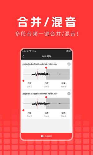 音频提取精灵可将一个音频文件中的一个片段和另一个音频文件中的一个片段进行合并拼接成一个音频文件