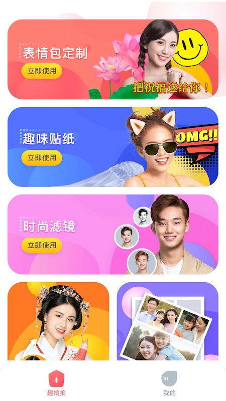 为用户们提供趣味贴纸,表情包定制,时尚滤镜,相册拼图等功能;