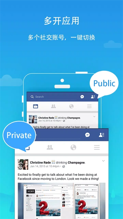 2、无需账号切换,向不同的朋友圈发布或浏览不同的信息,完美展示你的每一面精彩,例如微博、贴吧等