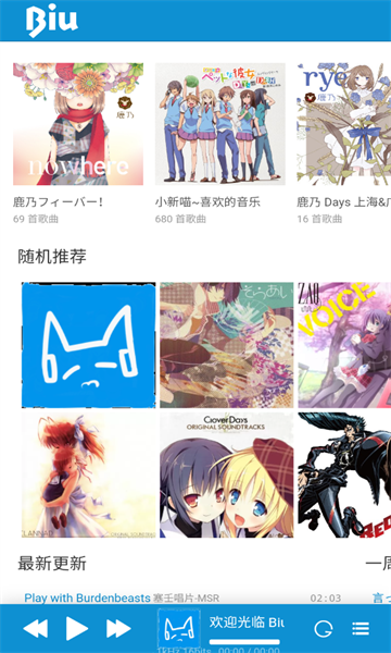 biu二次元音乐是一款融入二次元风格曲库内容的音乐播放器软件,拥有丰富的二次元风格曲库内容,包括动漫、游戏、Vocaloid等类型的音乐。用户可以在应用中浏览、搜索和收听各种二次元曲目,享受独特的音乐体验。软件提供基本的音乐播放器功能,包括播放、暂停、上一首、下一首等操作。