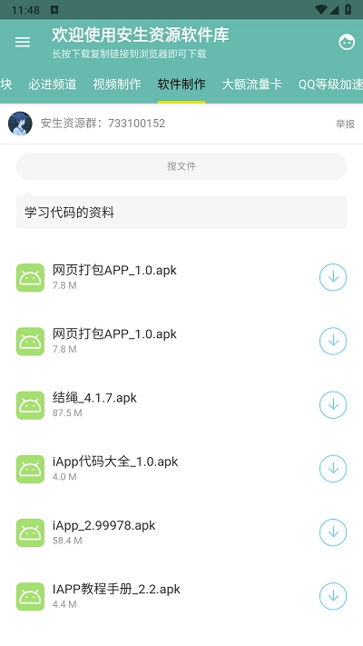 3、所有的应用资源都是免费提供的,不需要花钱。