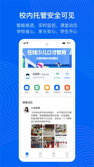 今托管应用程序非常易于使用,家长只要轻轻一点,就可以轻松地查看孩子在学校的表现、课程表、作业情况、考试成绩等详细信息。此外,今托管还提供了多种功能,例如实时提醒、智能分析、个性化推荐等,让家长可以更全面地了解孩子的学习情况,并根据需要采取相应的措施。