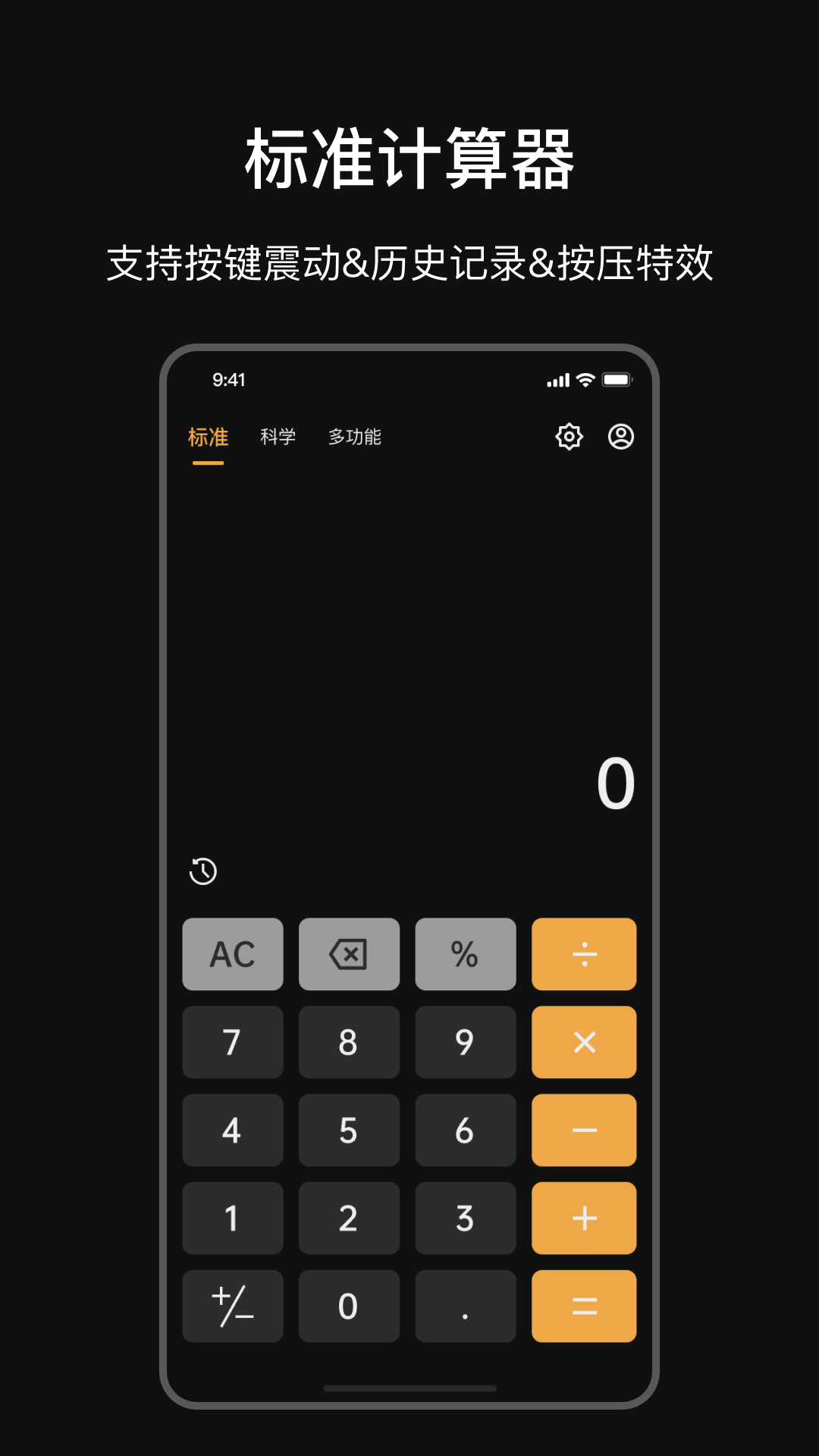 1、含有标准计算、分数计算、科学计算、房贷计算等功能。