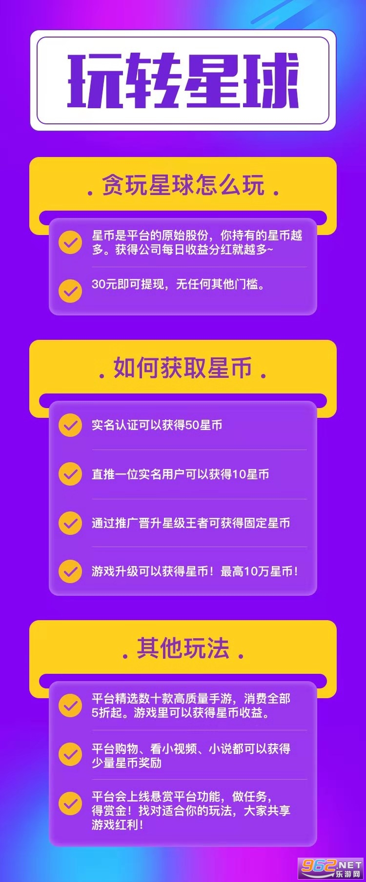 2、用户可以通过玩游戏升级、平台购物、小说任务等方式持续获得星币奖励,星币=平台原始股;