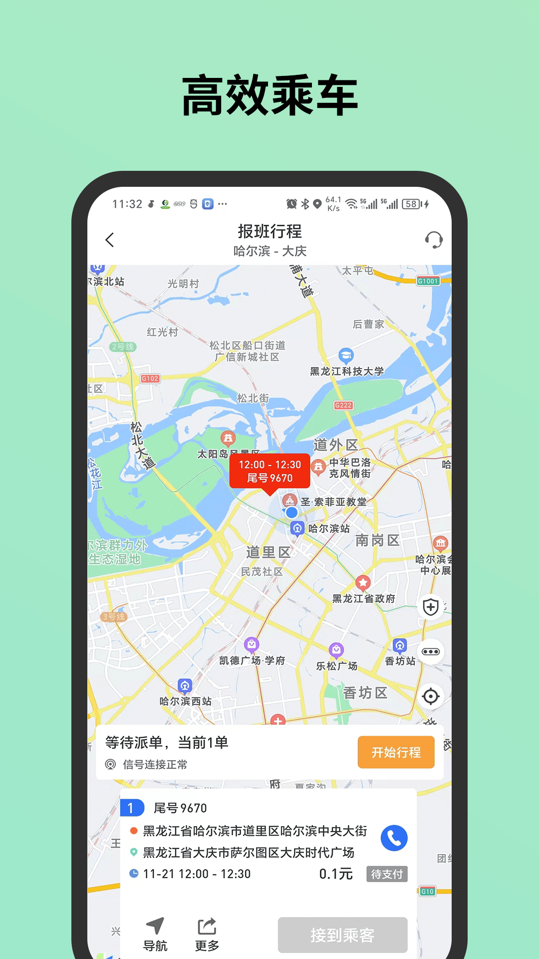 1、司机可以对接收到的订单进行管理,包括确认接单、调度行程、导航路线规划等,方便司机合理安排行程。