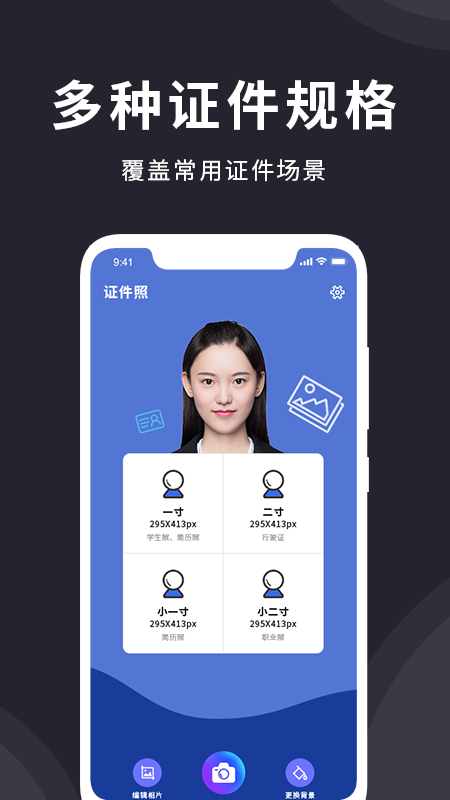 快速帮助用户制作您需要的证件照片,还可以根据您的需要选择背景颜色和大小;