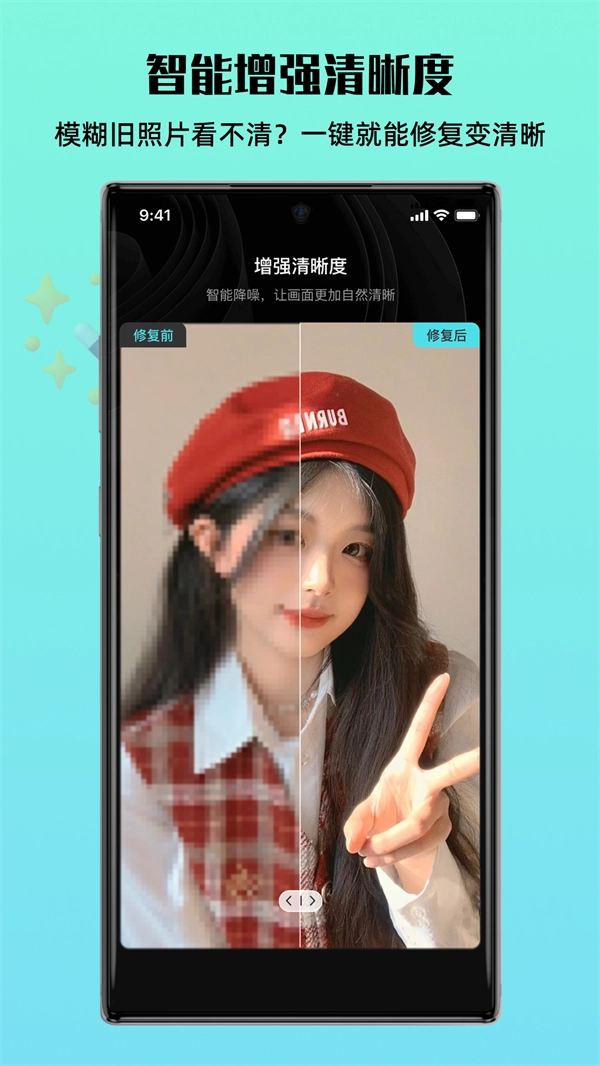 2、图片清晰度修复真的简单,一键搞定无其他的步骤,设置便捷。