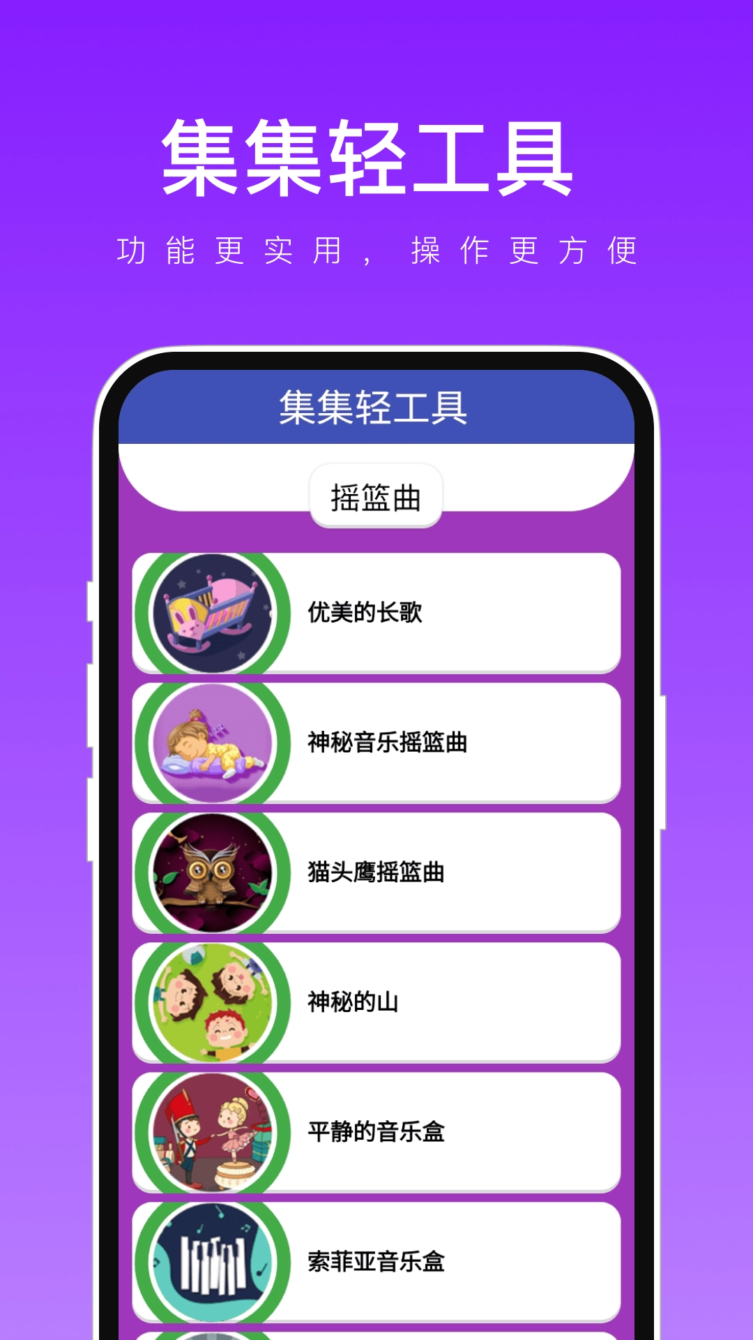 3、包含了摇篮曲、速度、长度转化、计算器、日历等功能。
