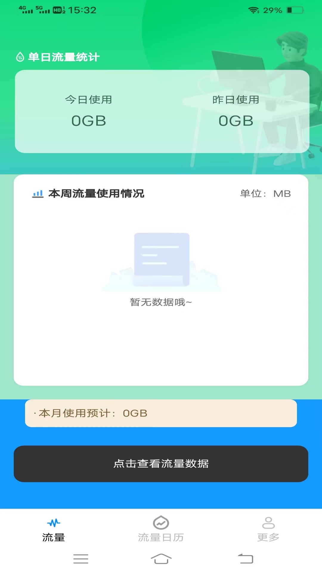 2、用户可以通过该应用程序实时查看自己的流量使用情况,包括已使用流量、剩余流量、已用百分比等信息。
