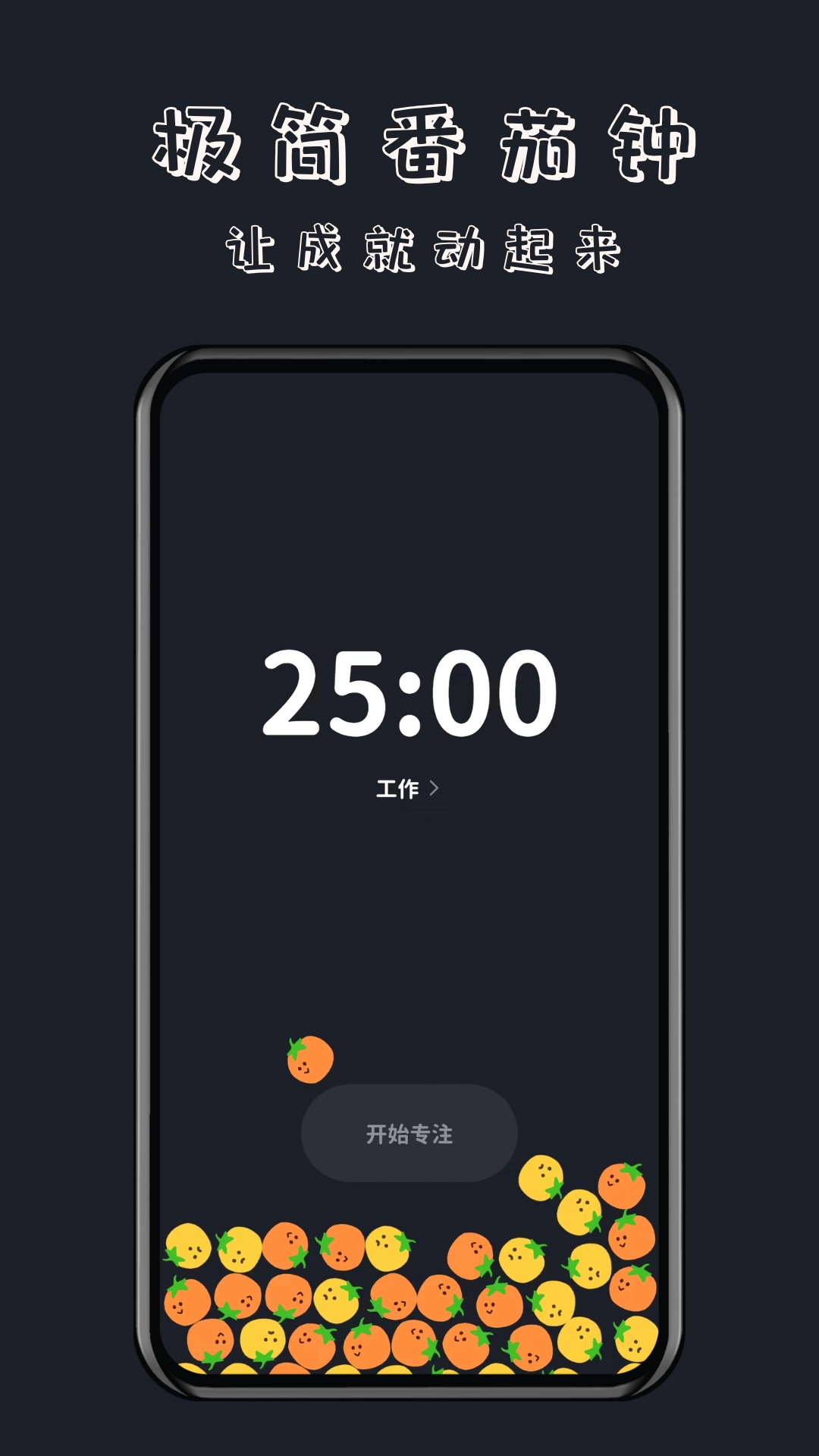 1、提供标准的番茄计时器功能,帮助用户集中注意力进行工作或学习。