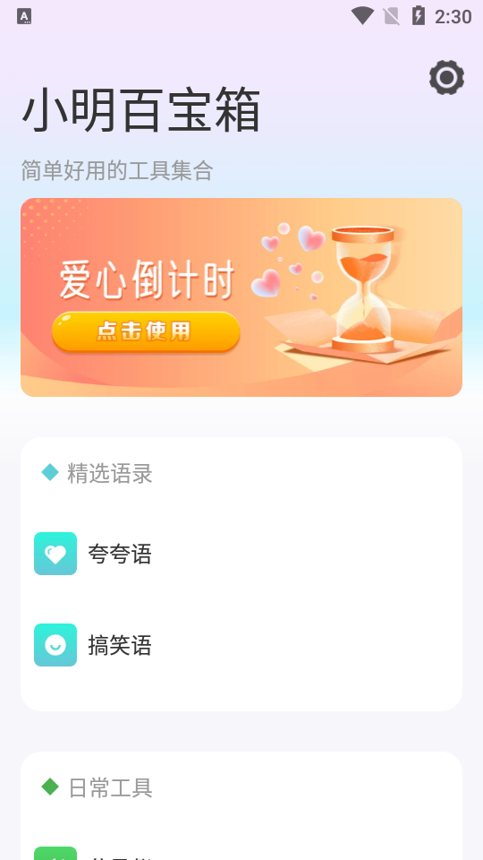 1. 工具全面:小明百宝箱集成了多种实用的工具,包括计算器、记事本、单位转换、天气查询、日历、定时器等,满足用户在各个场景的需求。