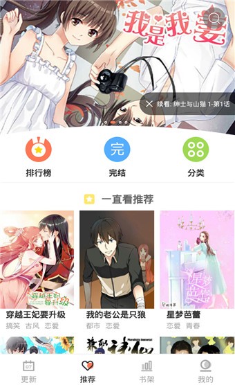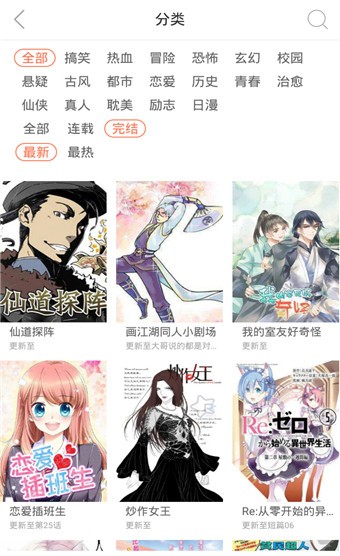 2、界面清爽,漫画的种类全面,无论是最新更新的热门漫画