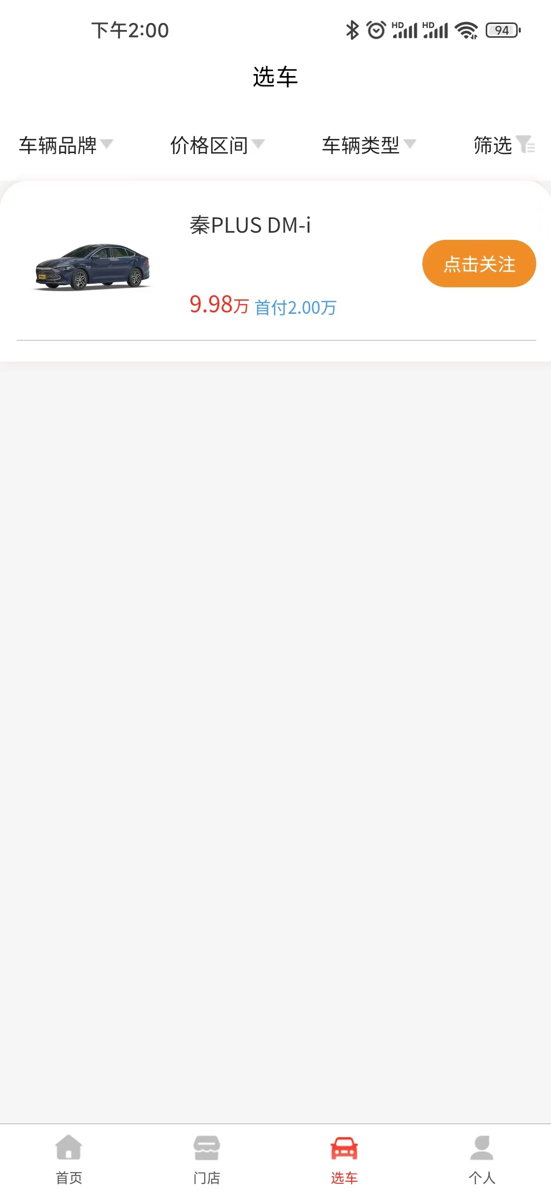 3、可以根据喜欢的品牌和车型、价格等筛选目标车辆。
