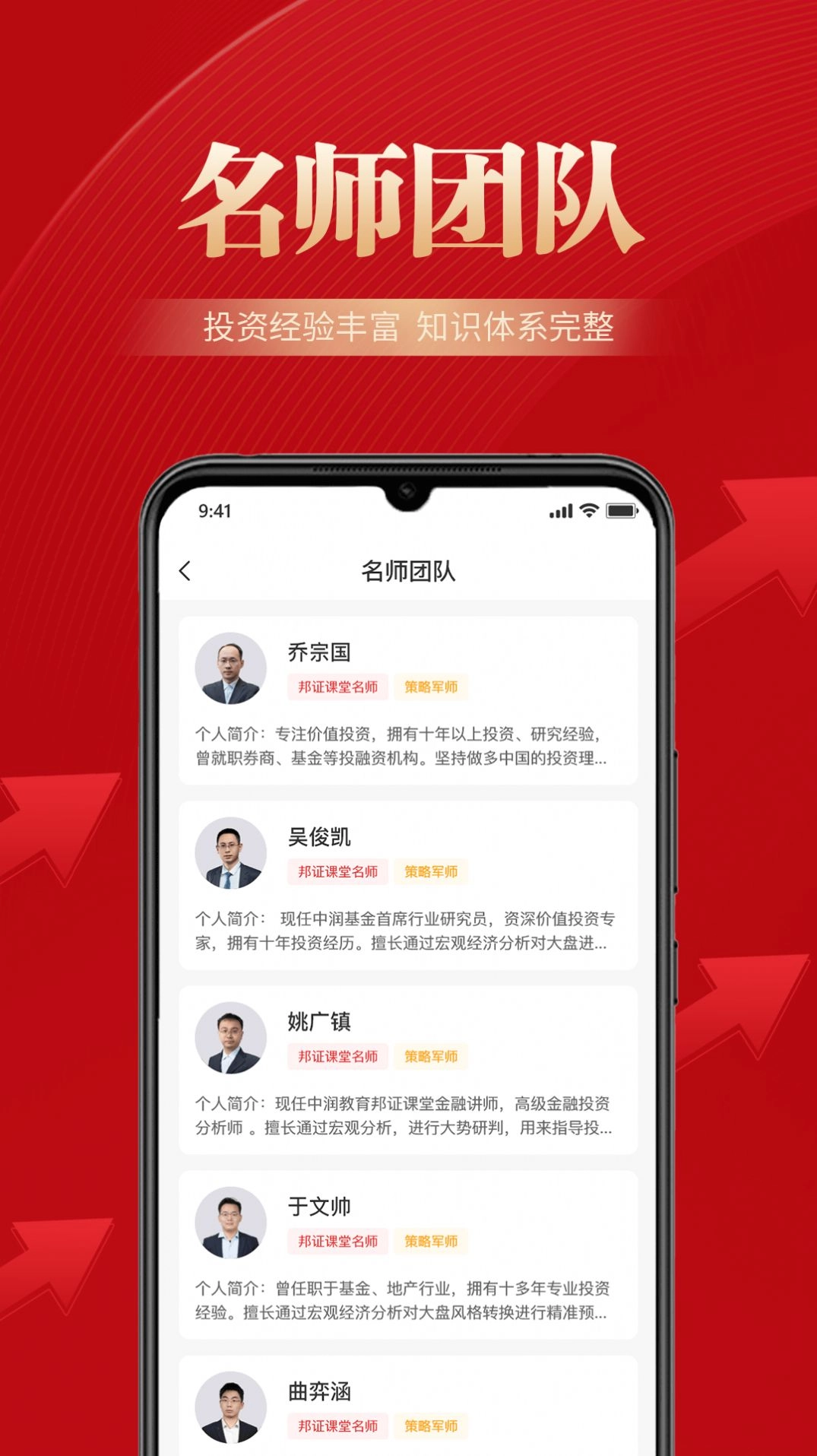 1、邦证课堂APP邀请了一批资深的金融领域专家和教育学者担任课程讲师。