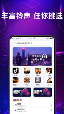 热门歌曲铃声、彩铃(炫铃),每日更新曲库超全,只要你想得到,在这里就能找得到~。