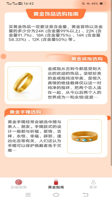 2、送福金屋APP提供专业的黄金选购指南,包括黄金投资知识、市场行情分析、购买技巧等。